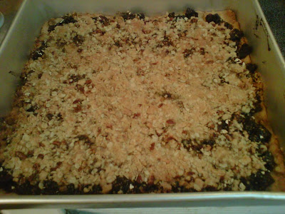 Mix well and spread on top of the fig mixture.. press down a little and bake in a 350 degree oven for 15 to 20 minutes. cool and cut into squares